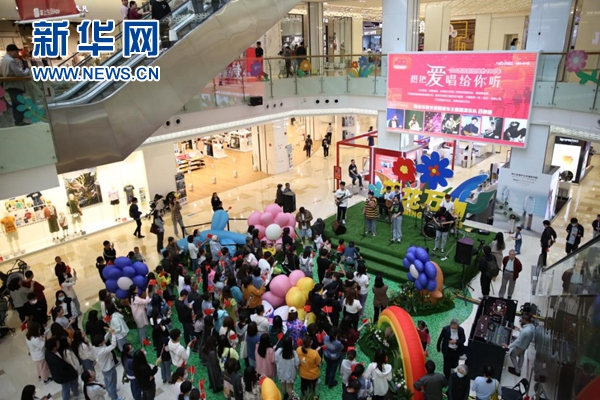 5月20日下午,南京市鼓楼区江东街道、凤凰街道,以及百事康乐队、中电鹏程、紫金农商银行城西支行、中建一局的青年党团员代表共同在环宇城一楼中庭开展“想把我唱给你听”主题活动。本次活动意在5月20日,谐音“我爱你”的日子,为祖国献唱,以更加多元的方式深化党史学习和爱国主义教育。