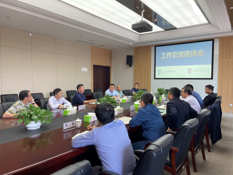 5月21日上午,江苏医药职业学院副院长侍杏华一行5人来我校调研。副校长祝兴成给予工作接待,双方进行了座谈交流。