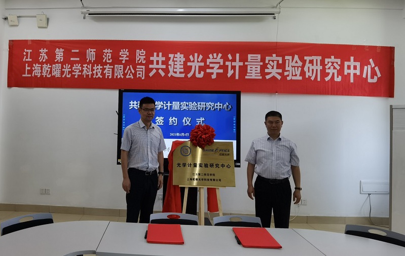 6月4日上午,我校与上海乾曜光学科技有限公司产学研合作基地签约暨揭牌仪式在石湫校区物理与电子工程学院顺利举行。党委常委、副校长刘贵友,物理与电子工程学院党总支书记、副院长葛传楠,物理与电子工程学院党总支副书记李佶莲,上海乾曜光学科技有限公司总经理杨毓、副总经理陈卫华及双方员工代表出席签约仪式。仪式由葛传楠主持。