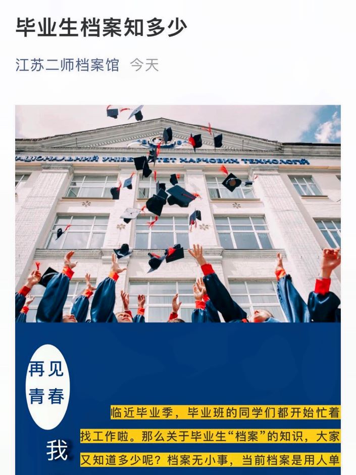 毕业季来临,不少毕业生对档案问题很关心。针对档案有什么作用、该如何保管档案等问题,综合档案馆制作了《毕业生档案知多少》专题展板以及微信推送,让毕业生及时了解档案相关知识。