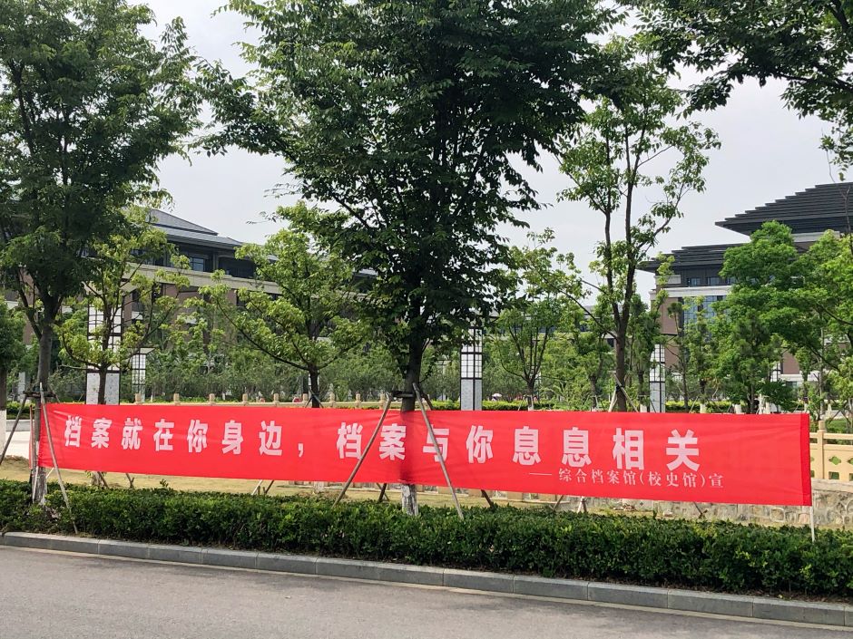 此外,综合档案馆还通过播放档案宣传片、张贴海报及悬挂横幅等方式进行宣传,以此来提高全体师生的档案意识。