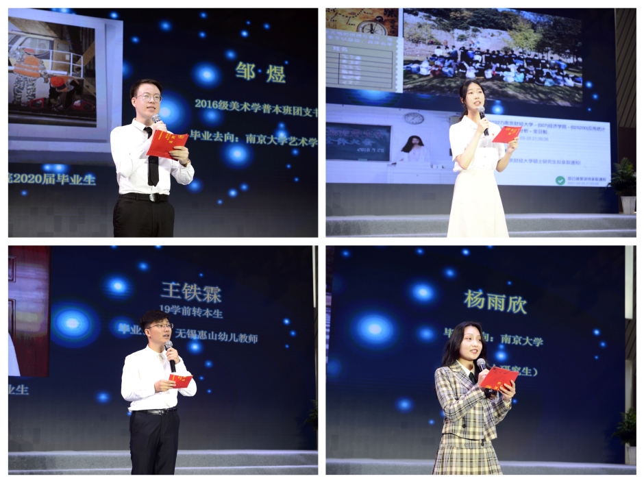 “扬子江畔,四载岁月未虚度;来日方长,应将信念自砥磨”,教师代表、教育科学学院院长蒋波教授发言。他用3个人生比喻,鼓励同学们笑对挫折,重塑理想,规划人生,为漫长的职业生涯和人生之路做好下一步的发展规划并不断前行。