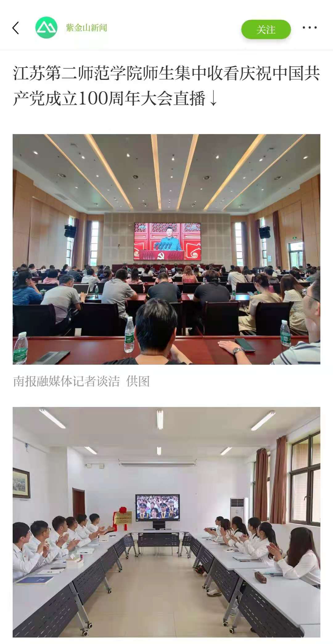 7月1日上午8时,庆祝中国共产党成立100周年大会在北京天安门广场隆重举行,南京各界组织观看现场直播。
