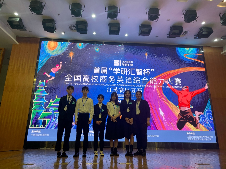 6月26日至27日,首届“学研汇智杯”全国高校商务英语综合能力大赛江苏赛区举行复赛。来自全省十所高校的多支参赛队伍参加本次复赛。我校外国语学院2019级商务英语专业的六位同学侯雅楠、陈雯、孙彦清、金恩光、朱雅娴、马可组队Triumph Team在指导老师李亚芬、廖文萌的带领下参加复赛,最终获得省级复赛(江苏赛区)二等奖。