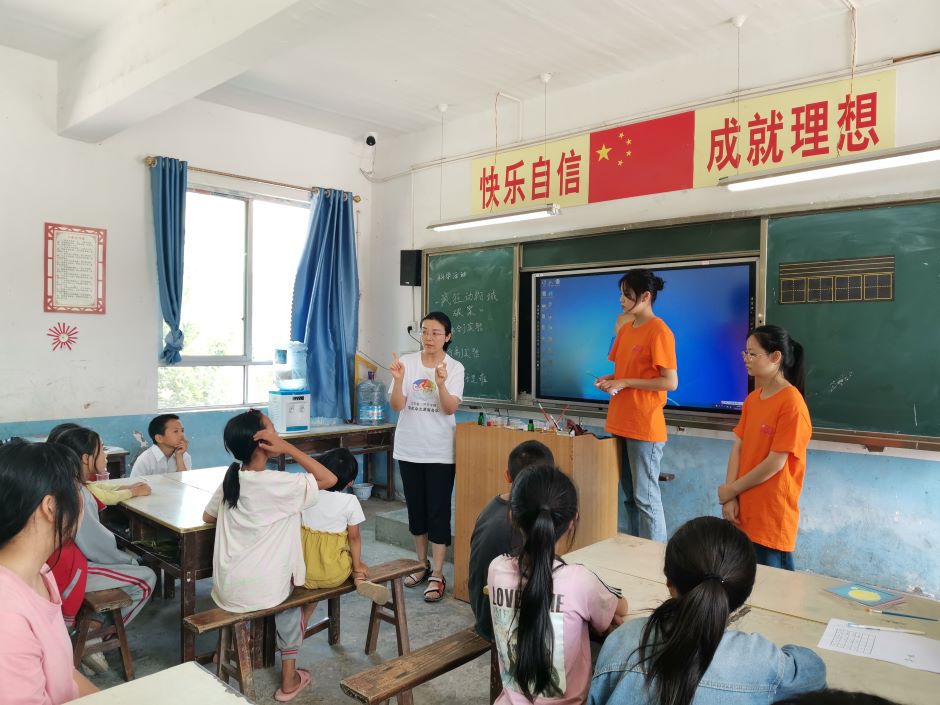 11日上午,团队来到中寺红军小学,与当地留守儿童进行游戏与初步交流。团队依据《3-6岁儿童学习与发展指南》,融入当地特色进行活动设计,同时挖掘当地乡村的本土化特色课程,以此丰富孩子们暑期乏味枯燥的生活,使孩子们在游戏中学习,在游戏中交流沟通,建立良好的同伴关系,养成良好的生活习惯。