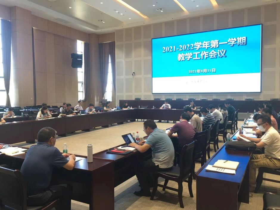 8月31日下午,我校在石湫校区敬业楼107会议室召开本学期第一次教学工作会议。副校长徐国华出席并主持会议,各公共课开课单位负责人、各学院院长和分管教学副院长、教学质量监测与评估处负责人及教务处相关人员参加会议。