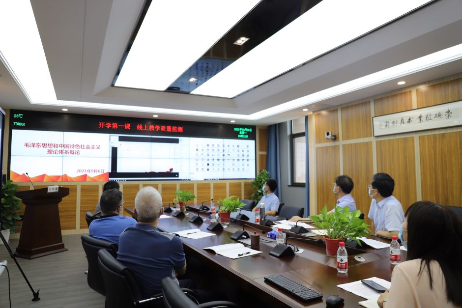党委书记王仁雷、校长王建,校领导潘文、姚振标、徐国华、陈金如、刘贵友,带领教务处、质评处、教师教学发展中心等职能部门负责人,检查了14个学院的线上教学情况,并重点对思政课线上教学进行了观摩和点评。