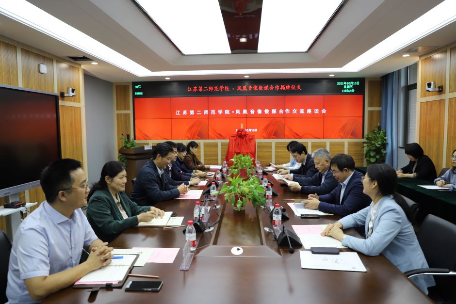 10月15日下午,我校在石湫校区与凤凰传媒集团举行合作揭牌仪式。校长王建,凤凰出版传媒股份有限公司党委书记、总经理佘江涛为“基础教育学科资源建设研究基地”揭牌。凤凰传媒副总经理宋吉述、凤凰音像数媒社长徐晨岷以及我校宣传部部长卜玉平、教务处处长徐新萍、科研处副处长王曦、教发中心主任顾晔峰等参加揭牌仪式,仪式由副校长刘贵友主持。