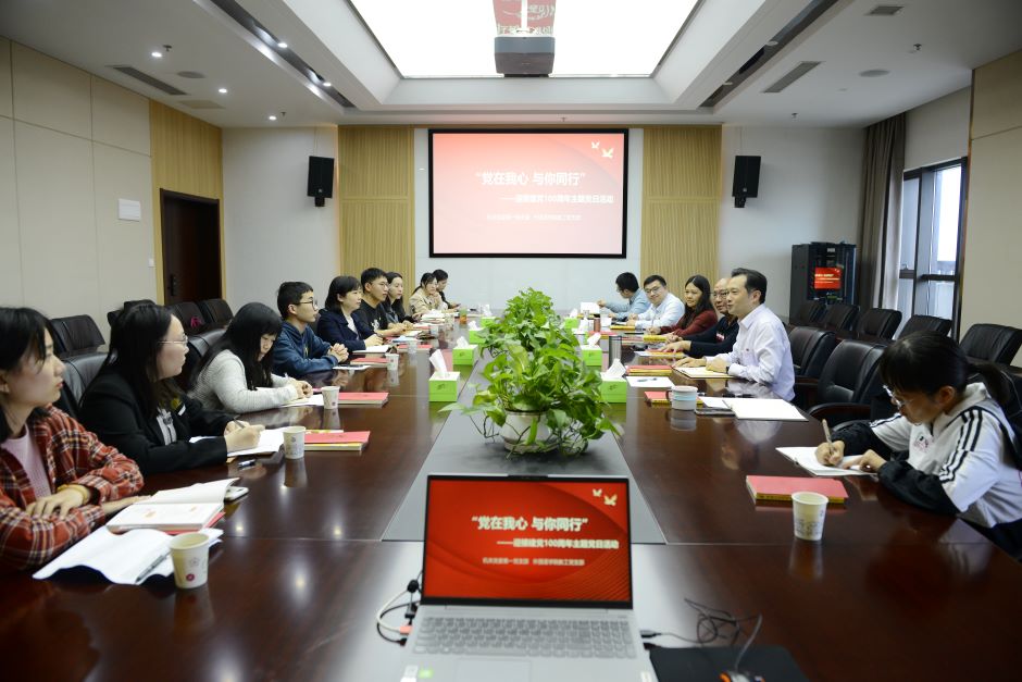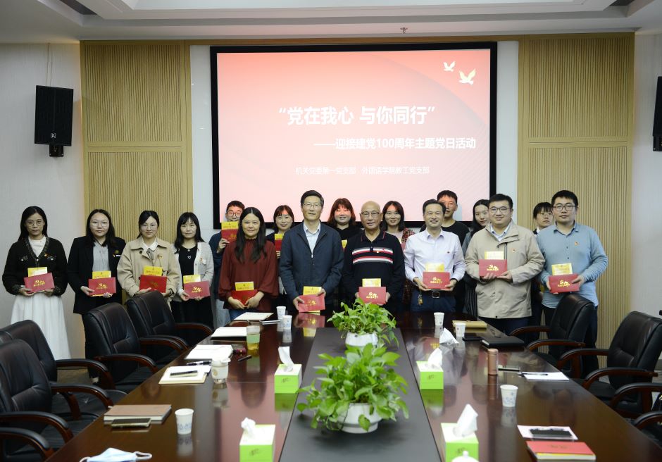 为庆祝中国共产党成立100周年,深入推进党史学习教育常态化,巩固深化“不忘初心、牢记使命”主题教育成果,10月15日,机关党委一支部开展“党在我心 与你同行”庆祝建党100周年主题党日活动。活动主要分三个部分进行,第一部分观看《永葆初心:习近平讲述百年征程》《美术经典中的党史》等有关党史的视频,从党的历史中汲取伟大的精神动力。第二部分给党员同志过集体“政治生日”。第三部分以座谈的方式进行,特邀我校原党委书记方国才、外国语学院教工党支部部分党员一起参加,老中青三代党员共同忆初心、明职责、谈感悟。
