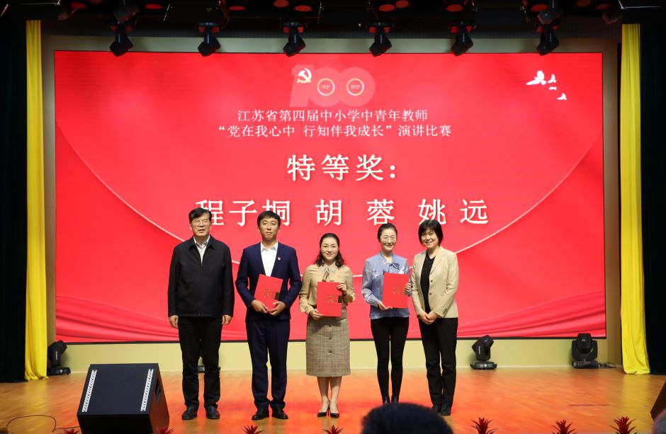 为深入学习贯彻习近平新时代中国特色社会主义思想,庆祝中国共产党成立100周年,纪念伟大的人民教育家陶行知先生诞辰130周年,努力造就党和人民满意的“四有”好老师,10月28日,由江苏省陶行知研究会、江苏省教育科技工会主办,镇江市陶行知研究会、镇江市教育工会承办的全省第四届中小学中青年教师“党在我心中 行知伴我成长”演讲比赛在镇江崇实女子中学隆重举行。经过各设区市层层选拔,来自全省中小学的37名优秀中青年教师代表同台竞技,尽展风采。