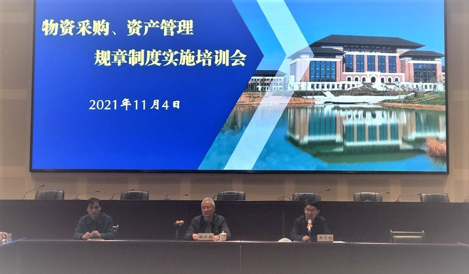 11月4日,我校召开物资采购、资产管理规章制度实施培训会,党委常委、总会计师姚振标出席会议并讲话,各二级学院、部门负责物资采购、资产管理的负责人和经办人参加会议,国资处(招标办)处长(主任)应正兴主持会议。