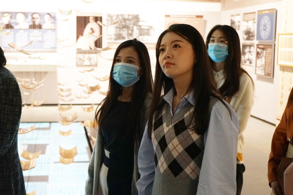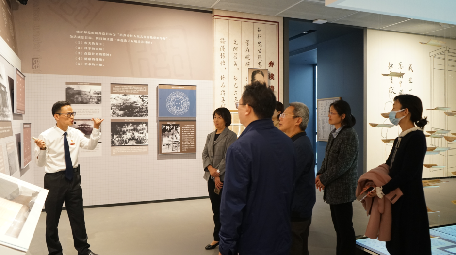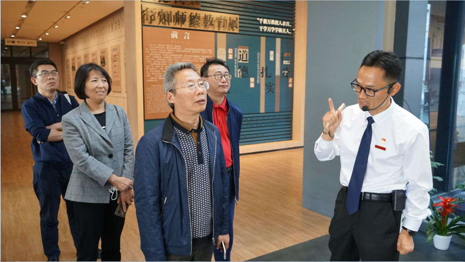 纪念馆大厅屹立着陶行知先生的木雕,正上方“万世师表”四个大字赫然醒目。在讲解员的带领下,一行人走进展馆,一张张史料照片、一封封手写书信、一件件珍贵文物……将陶行知先生的一生生动展示在大家面前。时空交错,受教良多;碰撞交流,知行合一,一位伟大人民教育家的形象深深打动了大家。