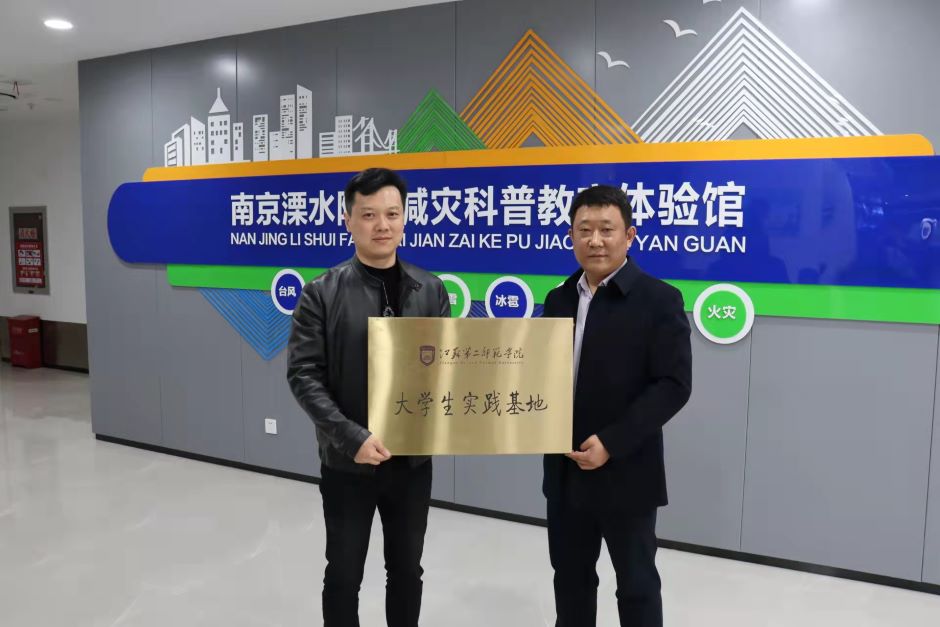 11月18日下午,城市与资源环境学院与溧水区气象局在南京溧水防灾减灾科普教育体验馆举行共建签约授牌仪式。城环学院院长孙汉群、党总支副书记李双江,溧水区气象局局长林伟、防灾减灾科科长章祥玲出席签约仪式。