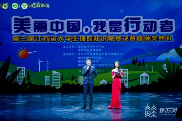 由江苏省环境科学学会、南京市生态环境局联合主办的第三届“美丽中国,我是行动者”江苏省大学生环保知识竞赛决赛26日在南京市青少年宫青春剧院落下帷幕,大赛将环保朗读者活动与环保知识竞赛深度融合,展现当代大学生的生态环保担当与青春风采。