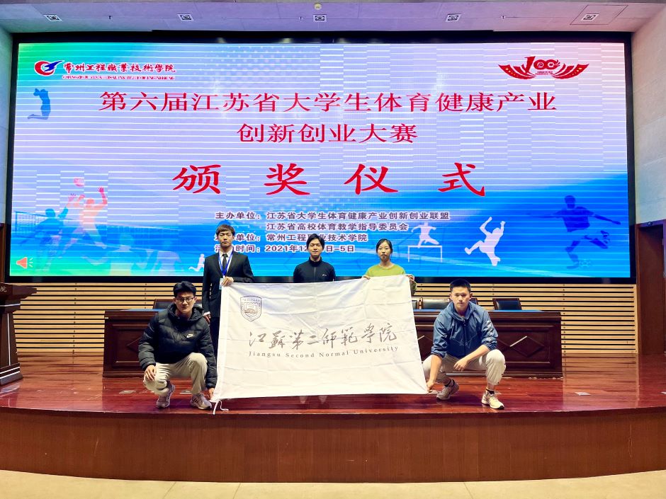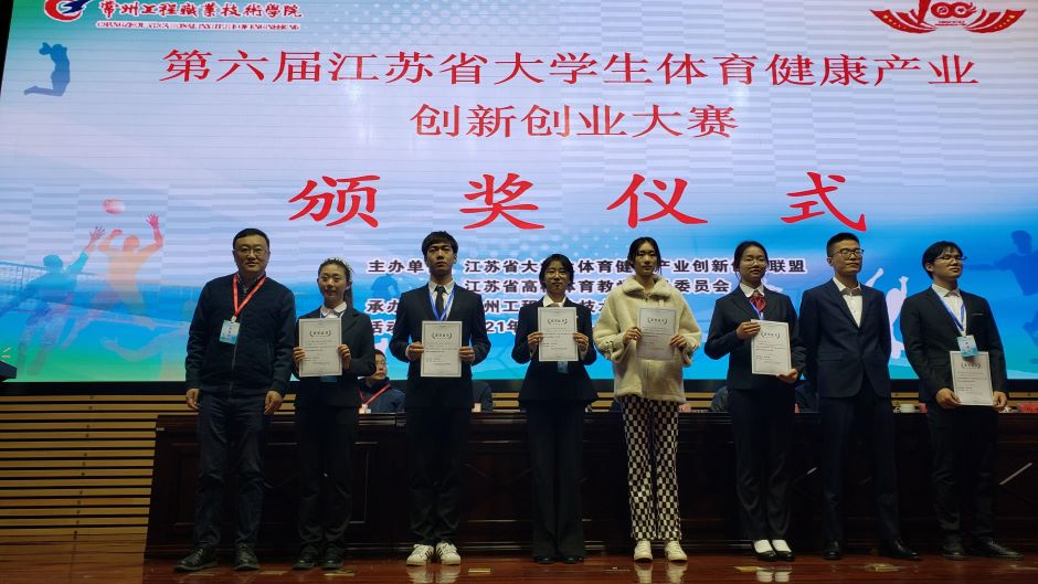 第六届江苏省大学生体育健康产业创新创业大赛12月4日至5日在常州举行。比赛由江苏省大学生体育健康产业创新创业联盟和江苏省高校体育教学指导委员会主办。此次比赛吸引了省内13所高校的32支队伍参赛。我校此次共有两支队伍晋级现场复赛,最终获得一个二等奖一个优胜奖。