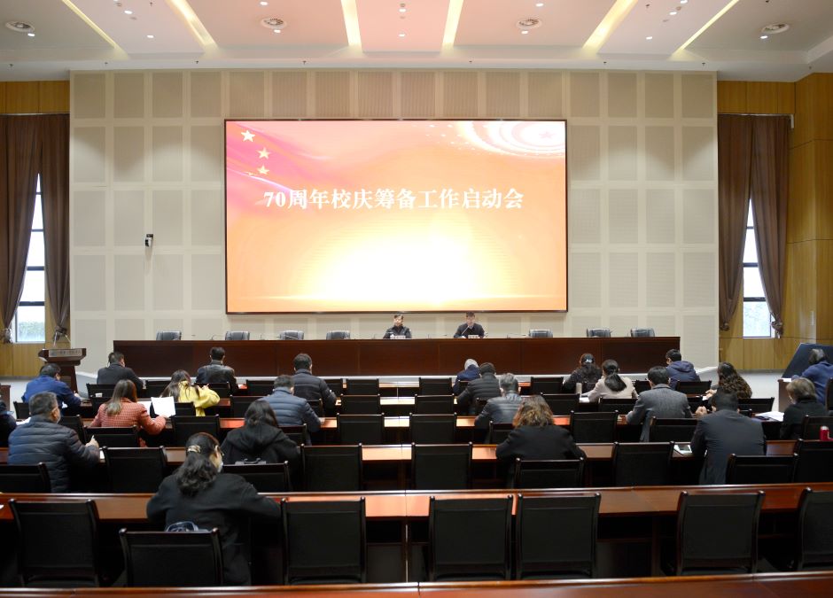 12月16日下午,我校在石湫校区召开70周年校庆筹备工作启动会。党委书记、校庆工作领导小组组长王仁雷出席会议并讲话,党委常委、副校长、校庆办主任刘贵友主持会议,各学院、部门党政主要负责人、校庆办全体成员参加会议。