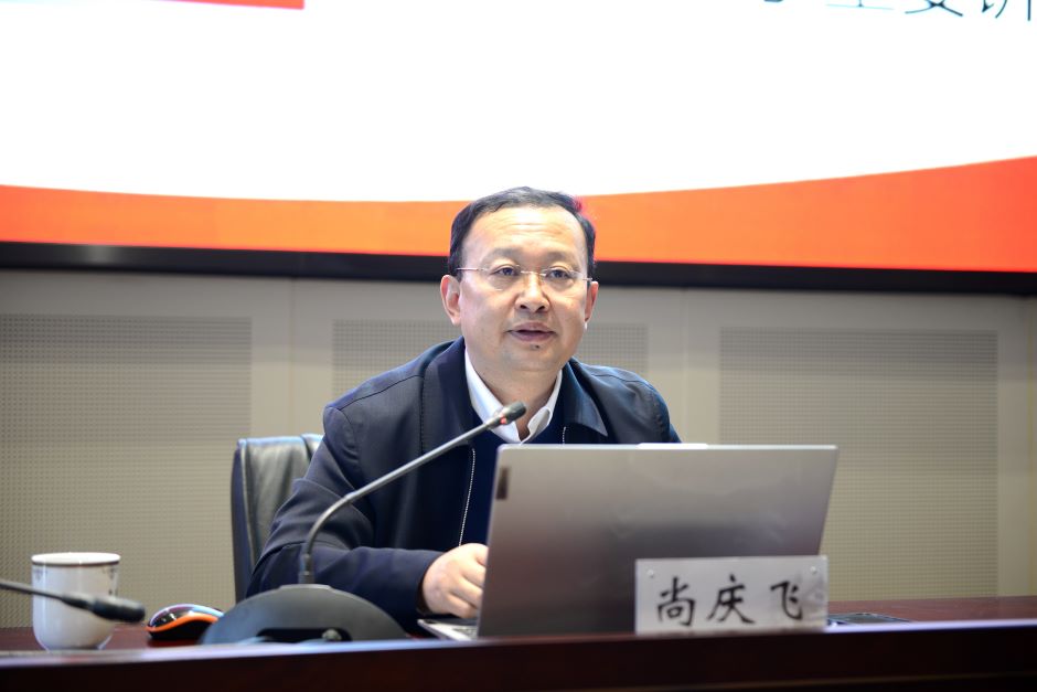 12月21日,省委宣讲团成员,省社科联党组成员、副主席尚庆飞来我院,为师生们宣讲党的十九届六中全会精神。党委书记王仁雷主持会议,全体院领导,中层干部和学生代表参加会议。