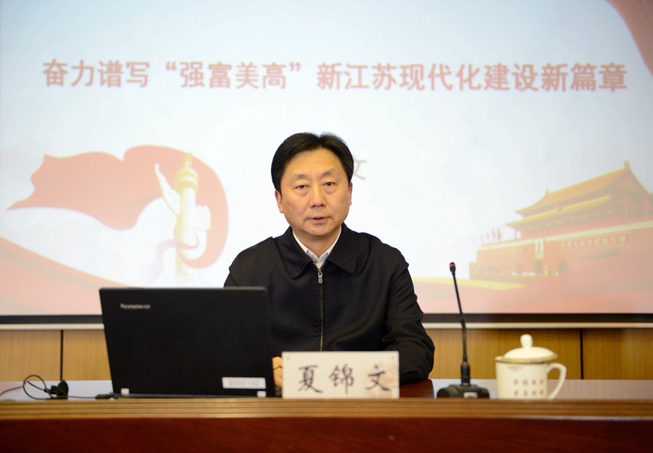 夏锦文说,习近平总书记2014年视察江苏时,亲自为江苏擘画了“强富美高”新江苏的宏伟蓝图。贯彻落实省党代会精神,必须全面把握“强富美高”新江苏建设的历史性成就,从中凝聚和汲取前行的智慧与力量。迈上新征程,总书记又赋予江苏“争当表率、争做示范、走在前列”的光荣使命。“三大光荣使命”是“强富美高”新江苏现代化建设的新篇章新要求新标杆。深刻理解“三大光荣使命”的核心要义,有利于做好关键性工作,真正当好表率、做好示范、走在前列。