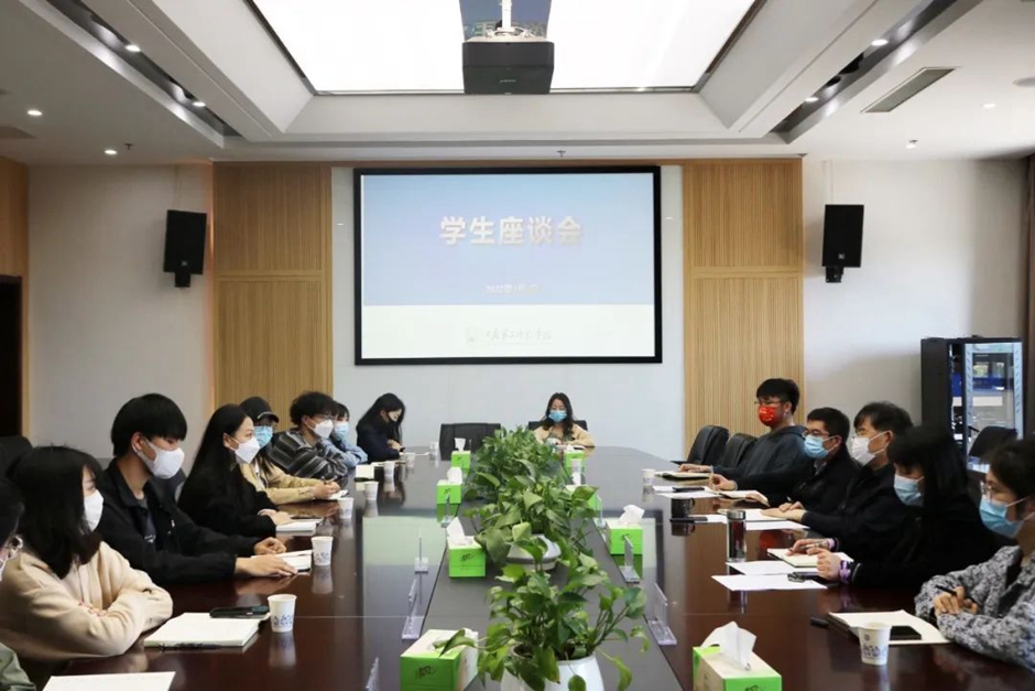 学生代表畅所欲言,将疫情期间的生活、学习等方面的想法、心情及困惑和与会人员分享。