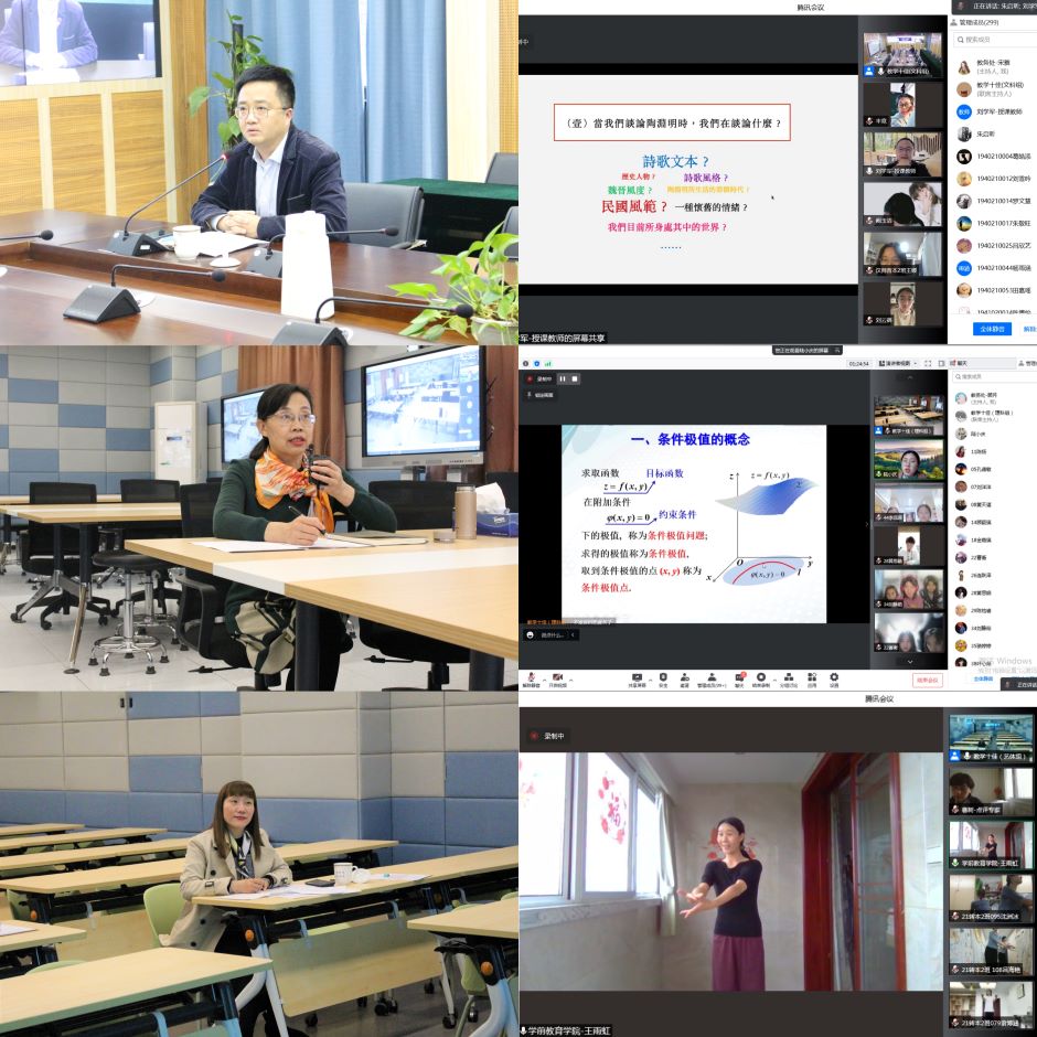 因疫情防控要求,本次活动分文科组、理科组、艺体组同时线上进行,分别由教务处处长徐新萍、教学质量监测与评估处处长陈蓓、教师教学发展中心主任顾晔峰主持,校第八届“教学十佳”获得者刘学军、陆小庆、王雨虹老师分别进行了示范课教学和说课展示。在示范教学过程中,授课教师秉持“以学生为中心”的教育理念,结合学科特点采用多种教学方法,统筹课前课中课后,向学生和观摩教师提供了精彩纷呈的课堂示例。校内外点评专家从教学目标、内容、方法以及过程优化,课程思政元素挖掘,教师教学素养提升等方面对三位教师进行了专业、中肯、独到的点评。随后,观摩教师们围绕课堂教学相关问题展开了热烈交流与深入研讨,“云端”切磋教艺,“线上”共同成长。