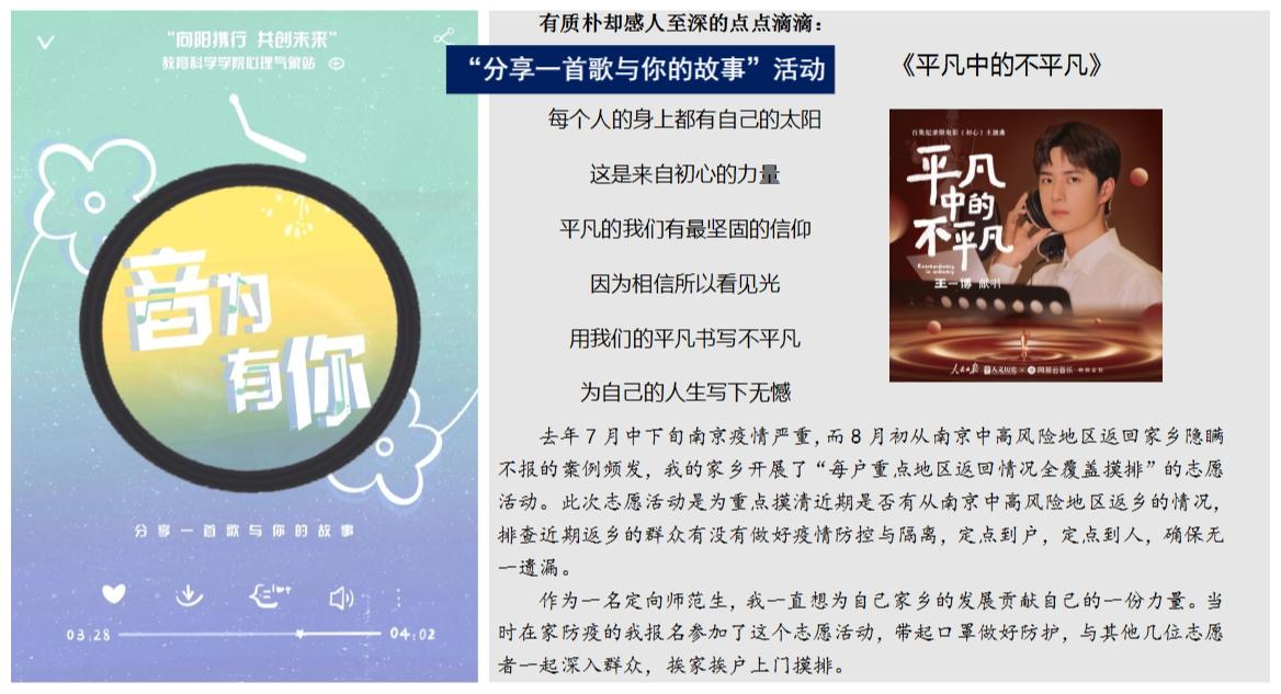 三月下旬至四月上旬,在我校大学生心理健康教育中心的组织下,各学院围绕“向阳携行,共创未来”这一主题,开展了形式多样的线上主题教育活动。