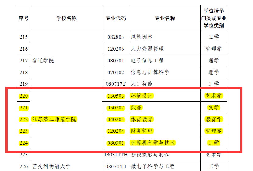 根据《省学位委员会省教育厅关于公布2022年度新增学士学位授权专业名单的通知》(苏学位字函〔2022〕2号)文件,我校俄语、财务管理、计算机科学与技术、环境设计和体育教育共五个专业通过学士学位授权专业审核,获得学士学位授权。