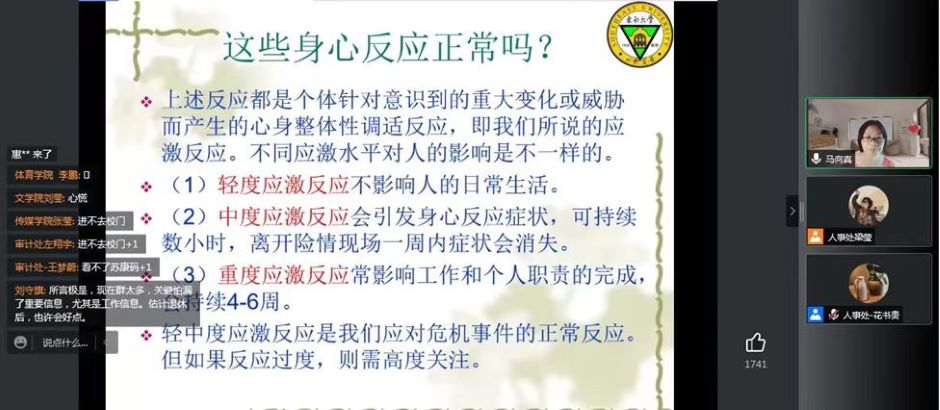 党委教师工作部组织题为“疫情下大学教师压力调适与自我关照”的讲座