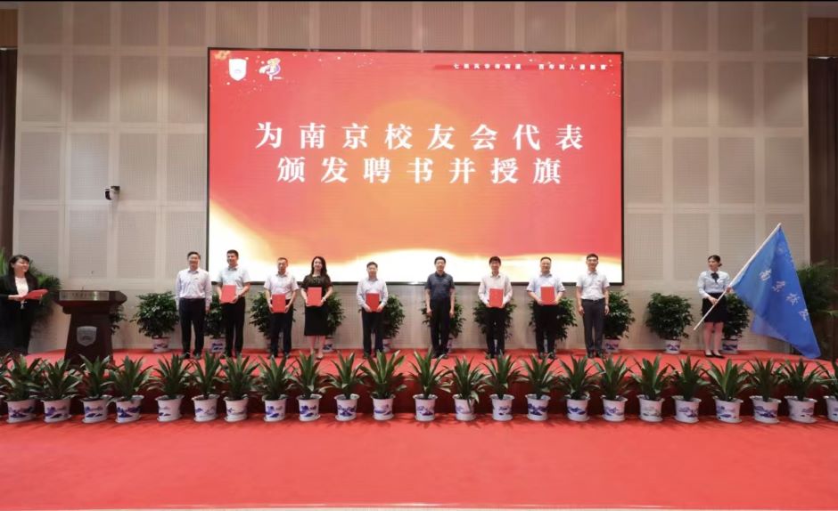 校长王建、副校长徐国华给南京校友会授予旗帜、颁发聘书