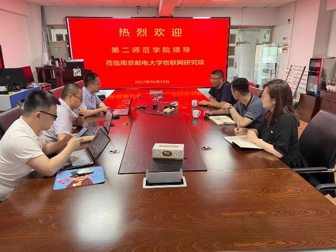 6月30日,我校省级基础教育大数据应用工程研究中心和国际合作联合实验室副主任倪艺洋教授和学术骨干陈书文副教授、宋智军博士一行3人赴南京邮电大学调研,南京邮电大学物联网研究院常务副院长赵海涛教授、张晖教授、夏文超博士给予了热情接待。