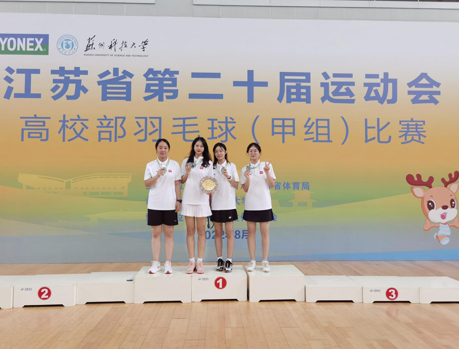 江苏省第二十届运动会高校部羽毛球于8月3日至6日在江苏科技大学举行。经过四天激烈角逐,我校羽毛球队突出重围,克服重重困难,获得了甲B组女子团体亚军、单打第四、女子双打第六、混合双打第八的骄人战绩,并获得了团体总分第六的好成绩。