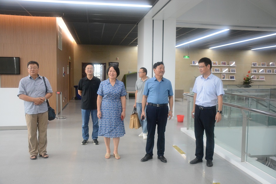 随后,周远生一行在刘贵友等陪同下对石湫图书馆进行了考察参观,施雁冰对图书馆的馆舍布局、文献资源、功能分区、亮点特色等情况进行了简要介绍。