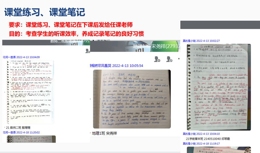 大学外语教研室一致认为应当针对不同类别的班级,设计形式多样的作业任务。依托批改网、词达人等线上平台进行作业布置与批阅。与此同时,教师应将人工阅题、数据分析和线下交流有机结合,有针对性地答疑解惑,从而提高作业的实质成效。此外,教研室提出应不断完善课程的形成性评价,严格执行过程与结果有机结合的学业考评制度。