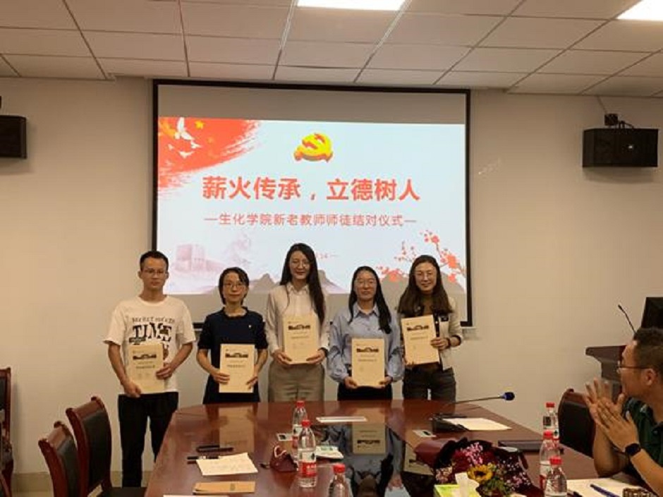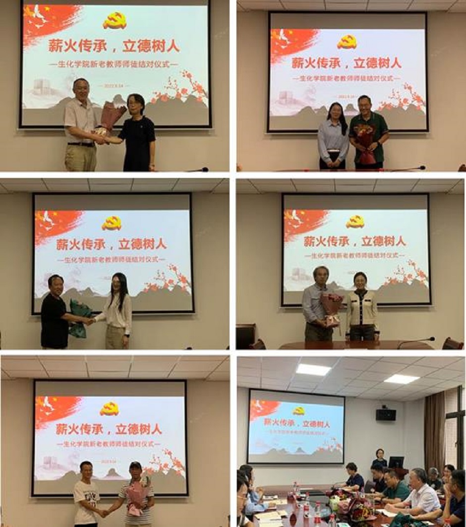 为促进青年教师快速成长,提高其教育教学水平和科研能力,充分发挥骨干教师的“传、帮、带”作用,培养一批素质过硬、业务精湛的优秀青年教师, 2022年9月14日下午生化学院在M1-335举行了新老教师师徒结对拜师仪式,学院全体领导及部分教师参加,仪式由生化学院副院长杜攀主持。