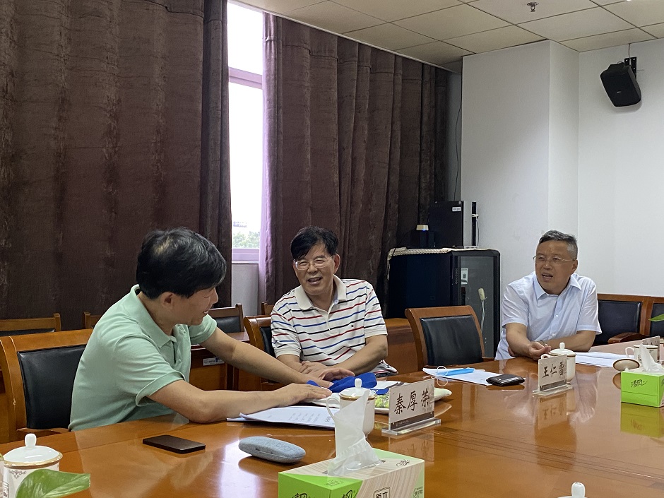 9月15日下午,我校杰出校友、国务院学位委员会第八届数学学科评议组成员、教育部数学类专业教学指导委员会委员、南京大学秦厚荣教授应江苏第二师范学院的邀请,来校做数学与应用数学国家一流专业建设指导。校党委书记王仁雷热情会见并与之进行亲切交谈。副校长陈金如、副校长刘贵友、科研处处长章飞、原教务处处长徐新萍教授以及数学科学学院班子成员参会。会议由陈金如主持。