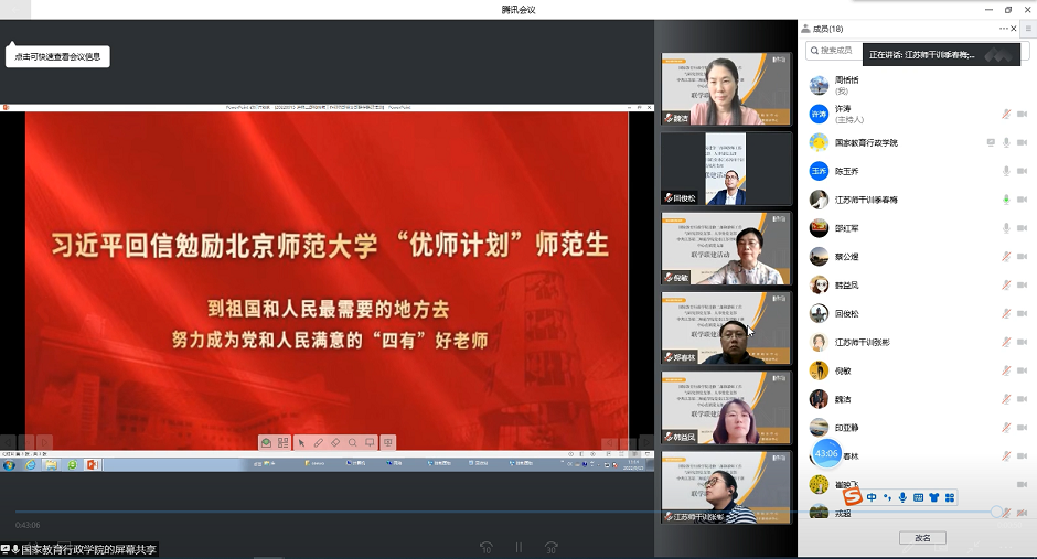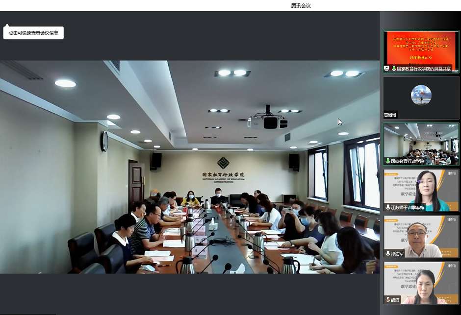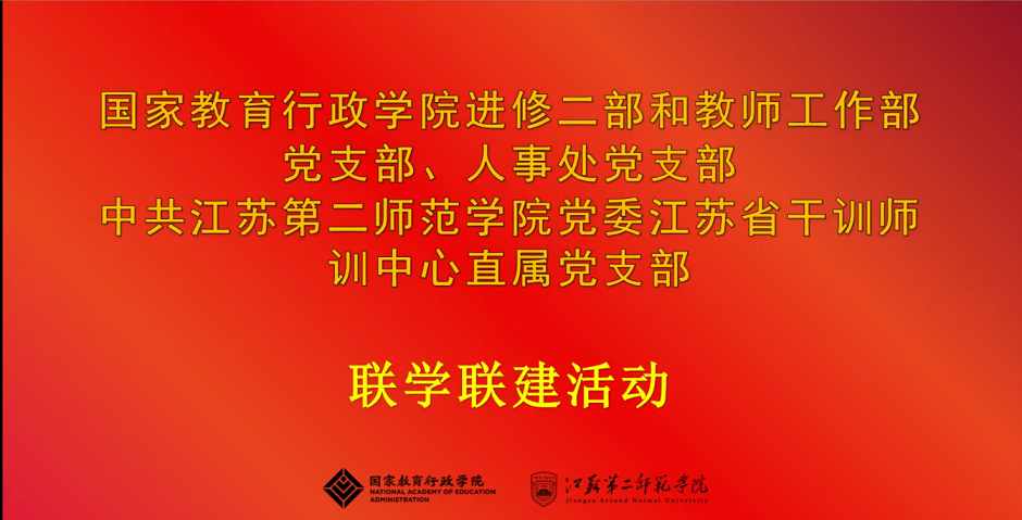 2022年9月15日上午,江苏省干训师训中心直属党支部与国家教育行政学院进修二部和教师工作研究部党支部、人事处党支部举办云端联学联建活动。国家教育行政学院党委委员、副院长于京天、国家教育行政学院人事处处长、党支部书记杨罡、江苏省干训师训中心直属党支部书记邵红军、江苏省干训师训中心常务副主任季春梅出席活动,活动由国家教育行政学院进修二部和教师工作研究部党支部书记于维涛主持。