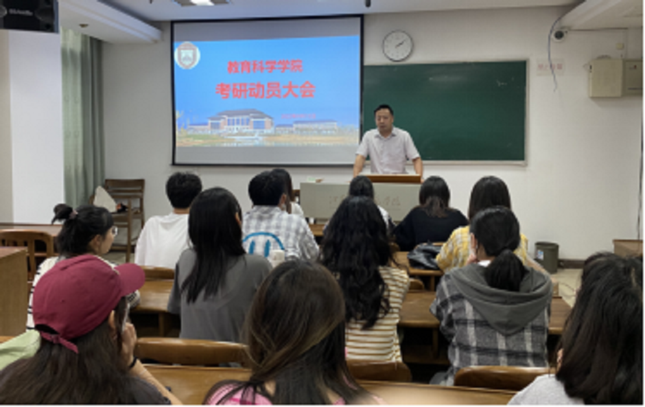 为全力支持我院2023届毕业生考研冲刺,进一步开展考研相关辅导工作,9月15日下午,教育科学学院采用“线上+线下”的方式,召开2023届毕业生第二次考研鼓励动员大会暨一对一指导交流会。学院党总支书记陈燏、院长蒋波、党总支副书记王晶、辅导员梅楠出席会议。会议由梅楠主持。