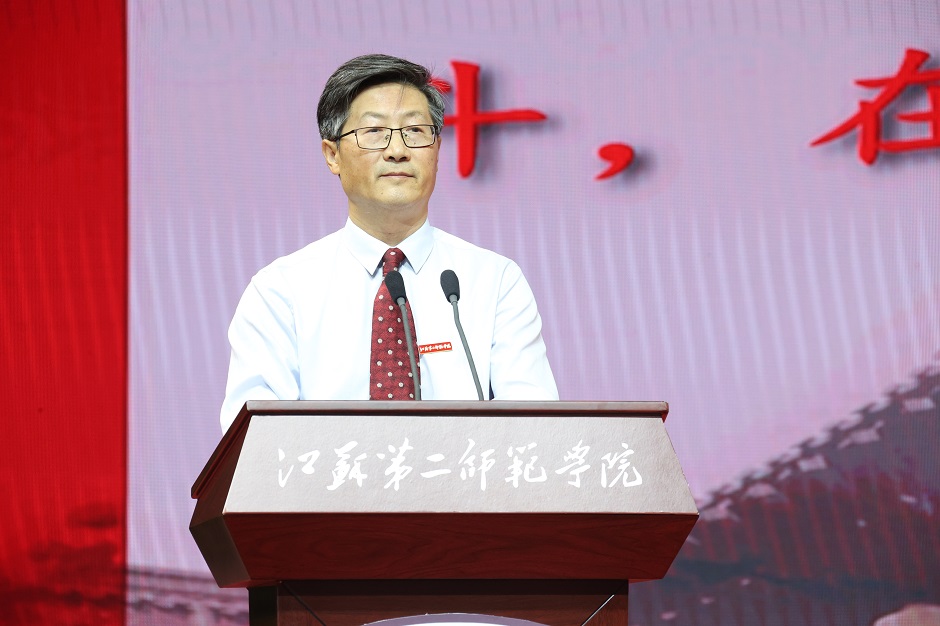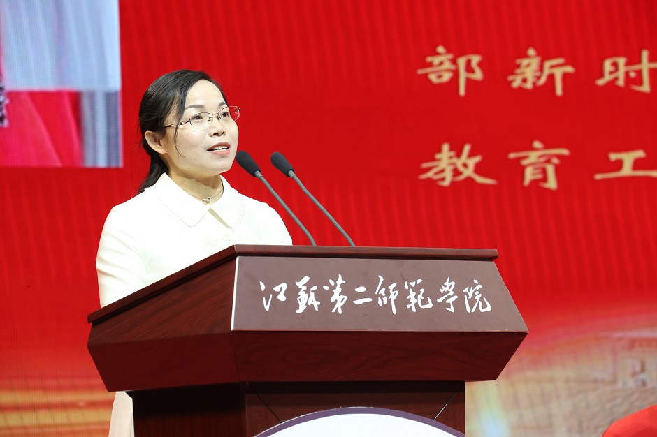 校友代表、江苏省特级教师、常州市武进区星河实验小学教育集团总校长、原教管系2005届毕业生庄惠芬饱含深情地回忆了母校求学生涯的点点滴滴,希望大家播下“时代大先生”之梦想,谱写“相信望远镜”之规划,攀登“人生珠穆朗玛”之勇气,珍惜大学美好时光,精进学业,投身实践,争做新时代江苏二师精神的传承者和奋斗者。
