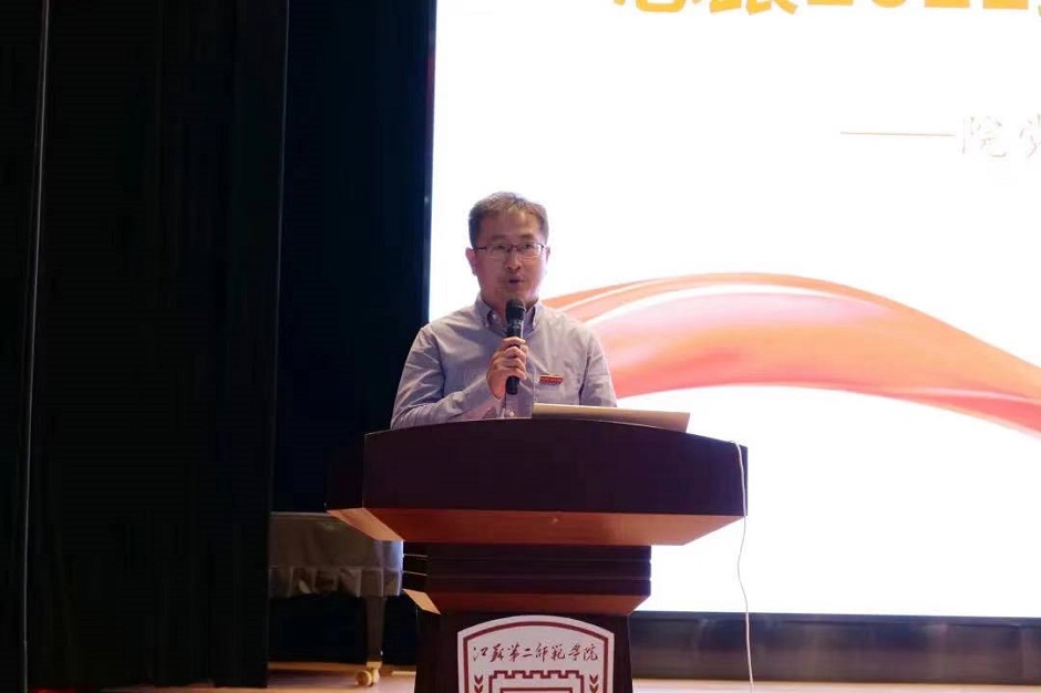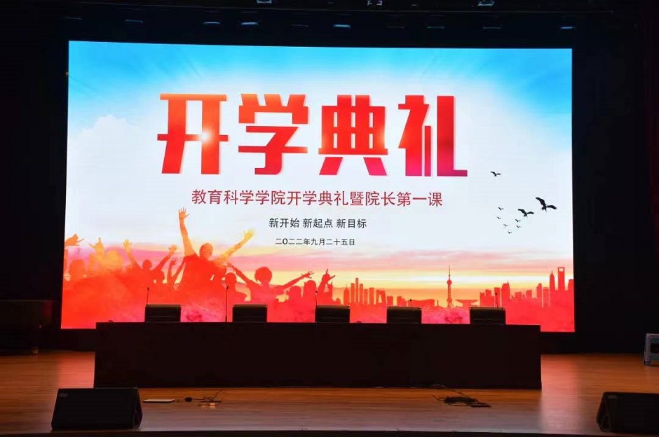 为帮助新生加强对学校、专业的了解,尽快融入大学生活,鼓励同学们在新环境中调试自我,明确学习方向,教育科学学院于2022年9月25日下午,在石湫校区尚美楼二楼报告厅举行2022级新生开学典礼暨院长第一课。教育科学学院党总支书记陈燏、院长蒋波、副院长邬春芹、党总支副书记王晶、2022级班主任、辅导员出席典礼。谨遵疫情防控精神,本次开学典礼采用线上线下结合的方式,集结了学院400多名新生和家长参加。