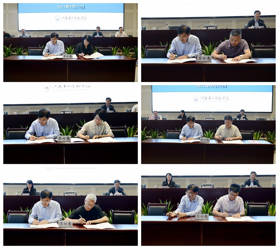 为深入学习贯彻落实习近平新时代中国特色社会主义思想、全面贯彻落实新时代党的建设总要求,9月29日,学校党委在石湫校区举行全面从严治党主体责任书、意识形态工作责任书、安全管理工作责任书和网络安全责任书签订仪式。校党委书记王仁雷,校长王建,校领导刘继红、潘文、祝兴成、崔燕、姚振标、陈金如、刘贵友出席签订仪式。签订仪式由王建主持。