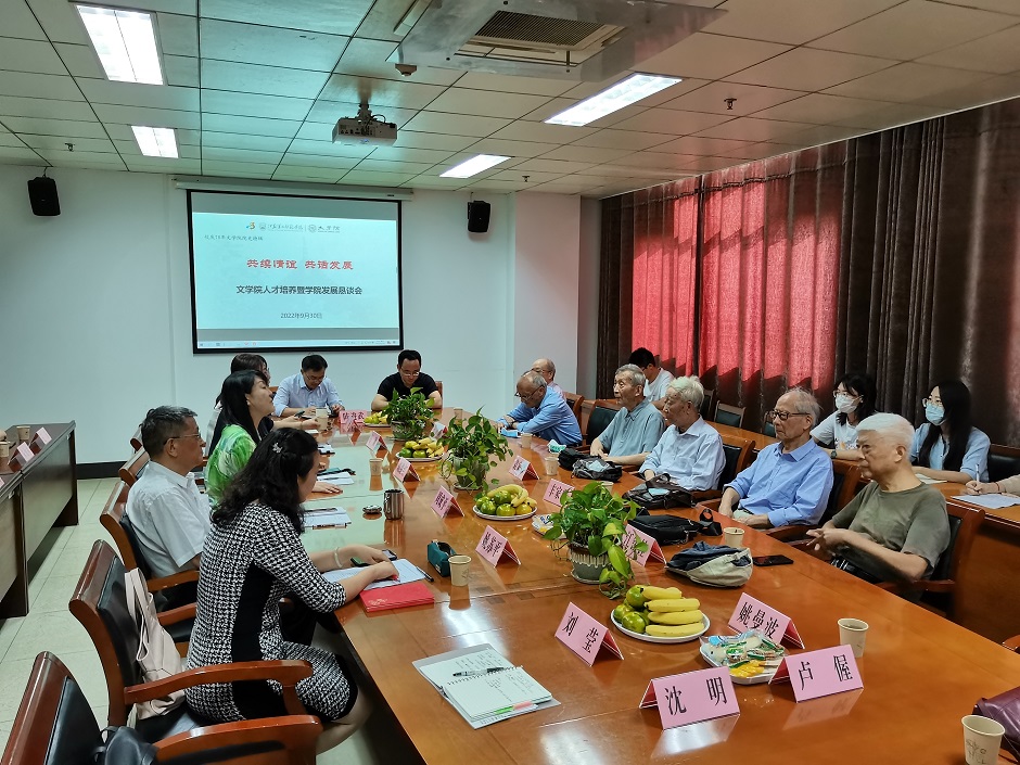 离退休教师丰家骅、李兆麟、王左力、袁家麟、王思焜、江锡铨、姚曼波、卢偓、沈明等纷纷发言,回顾了当年开展教学、科研和管理的经历。他们在充分肯定学院工作的前提下,就文学院师范人才培养、师资队伍建设、青年教师培养、教学科研互动和基础教育衔接等方面的工作,坦诚地提出了诸多意见和建议。
