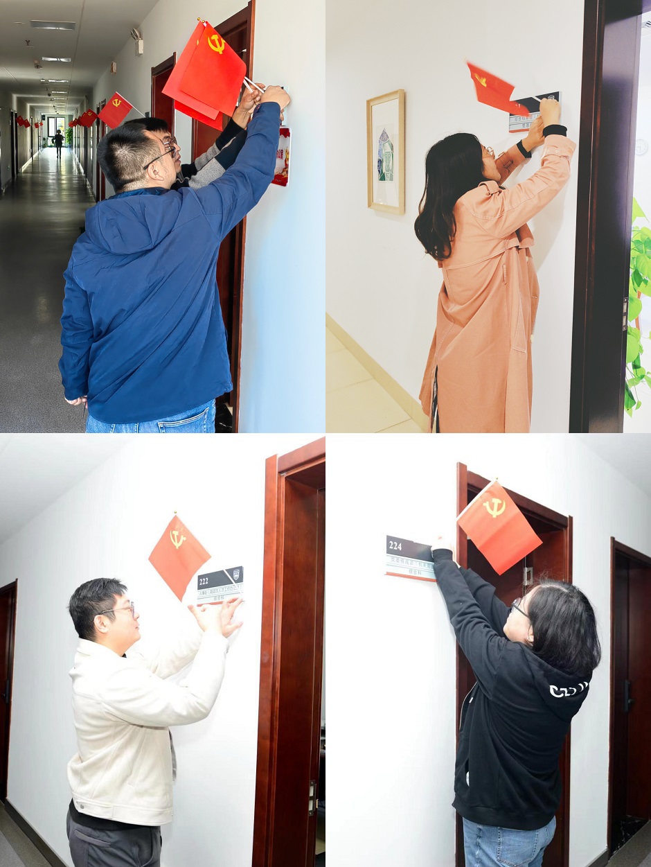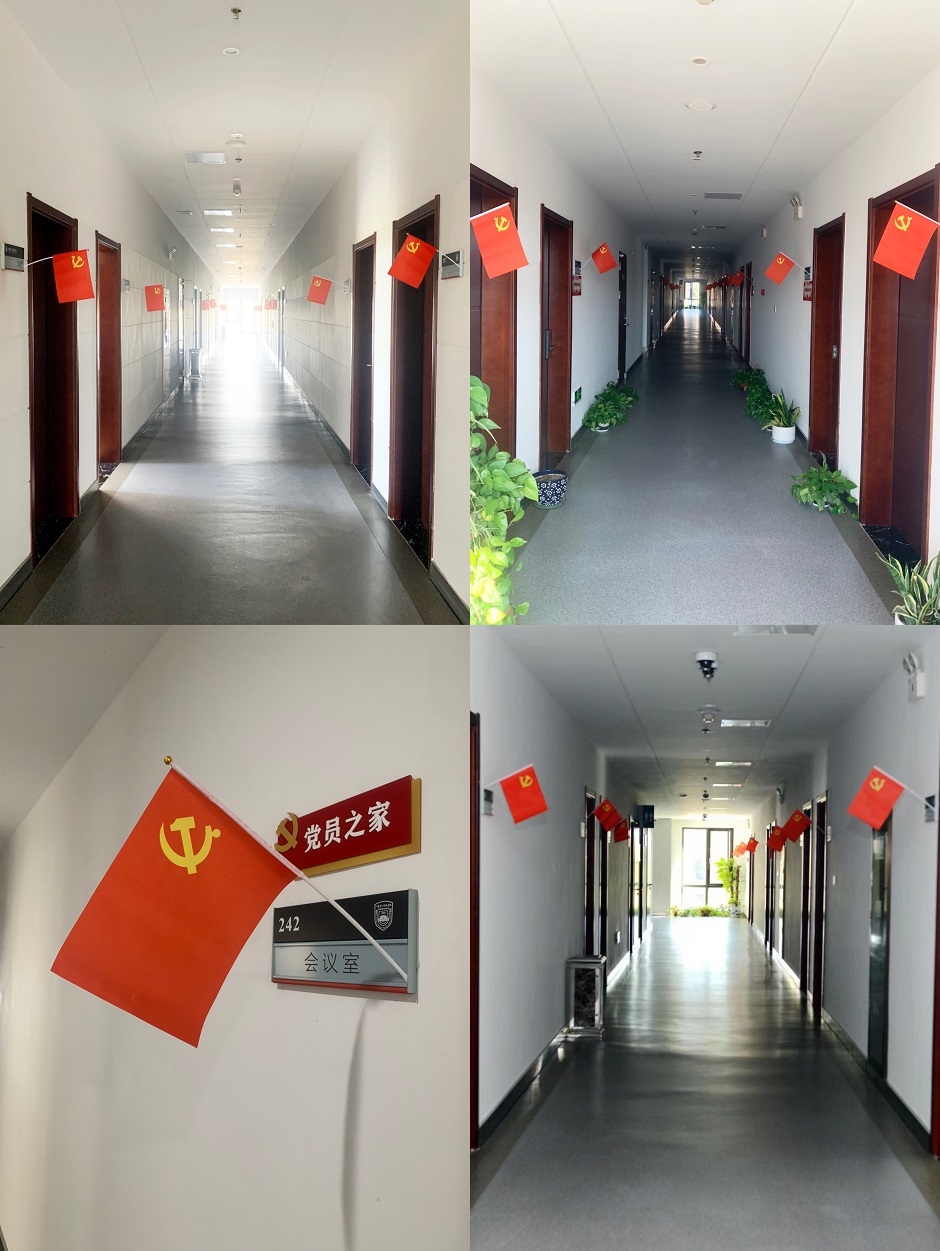 近日,学校各机关部门办公室门前纷纷挂起鲜艳的党旗,办公区红旗飘扬,充满喜庆氛围。这是机关党委举办的主题活动的一部分。