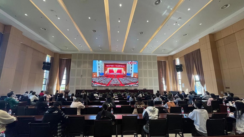 10月16日上午10时,中国共产党第二十次全国代表大会在北京胜利开幕。为使全校广大师生深入学习领会党的二十大精神,我校组织全体校领导、中层干部和师生代表在两校区报告厅集中收听收看开幕会现场直播,各二级单位党组织通过多种形式组织党员和师生收听收看。