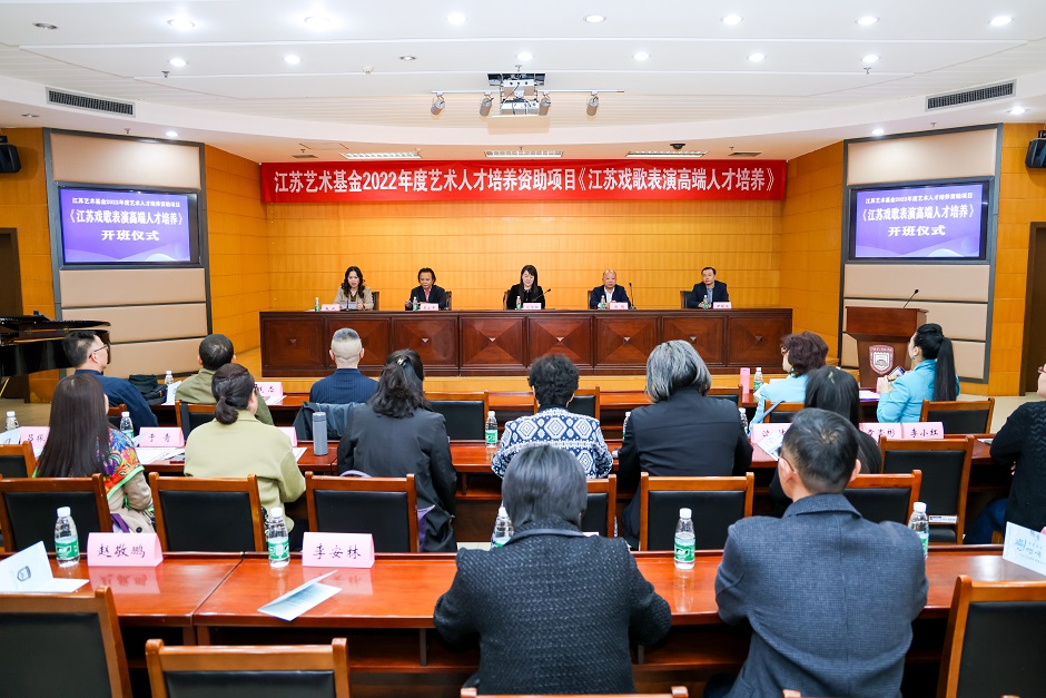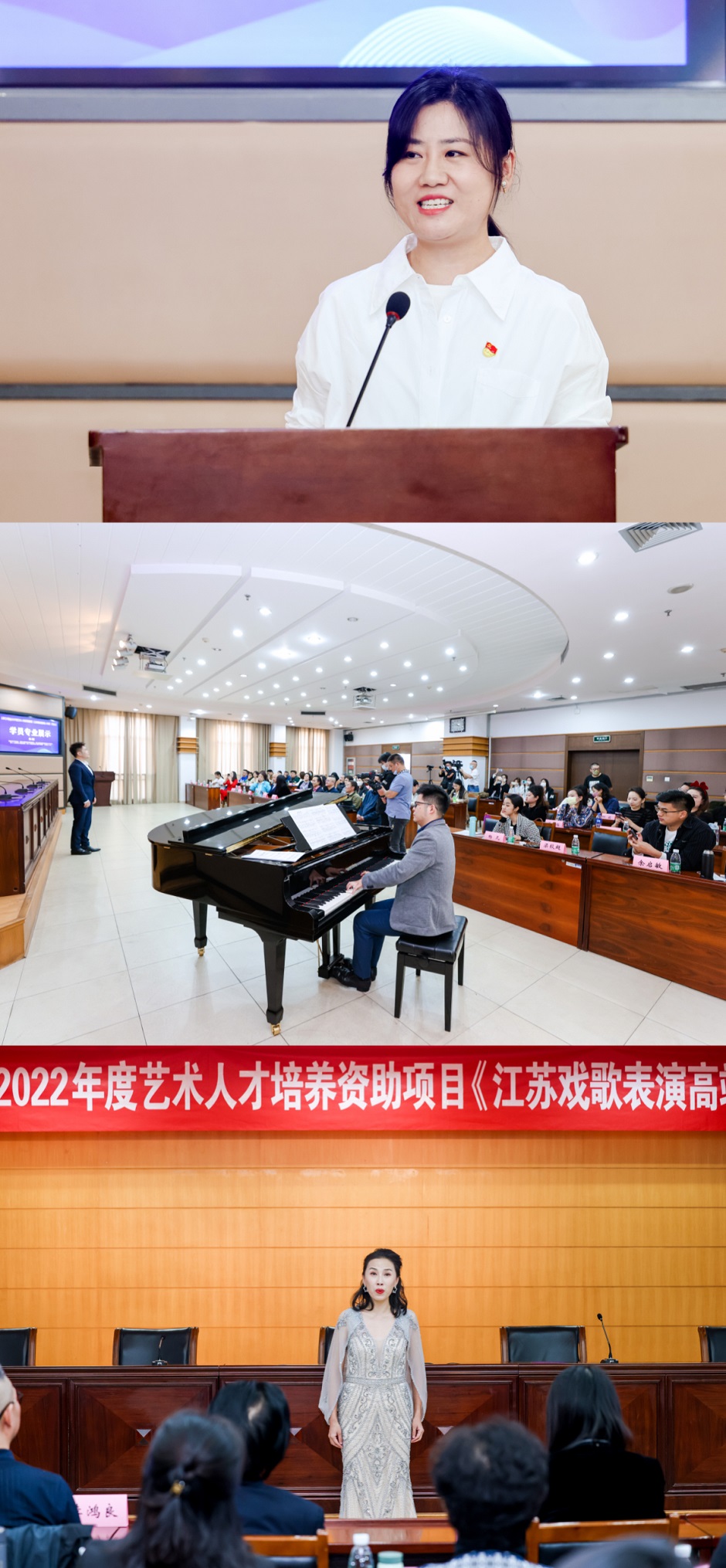 10月25日下午,由我校主办的江苏艺术基金2022年度艺术人才培养资助项目——《江苏戏歌表演高端人才培养》开班典礼在草场门校区举行。校党委副书记、副校长刘继红,江苏艺术基金管理中心主任濮琦,江苏省文史研究馆馆员、一级作曲家吴小平,江苏省演艺集团副总经理、中国戏曲梅花奖得主李鸿良等领导和嘉宾出席典礼。近二十位省内外戏曲、声乐和表演专家、本次项目遴选出的三十名江苏优秀中青年声乐表演人才、我校相关职能部门和二级学院代表以及新闻媒体代表参加了开班典礼。典礼由项目负责人、我校音乐学院教授赵斌主持。