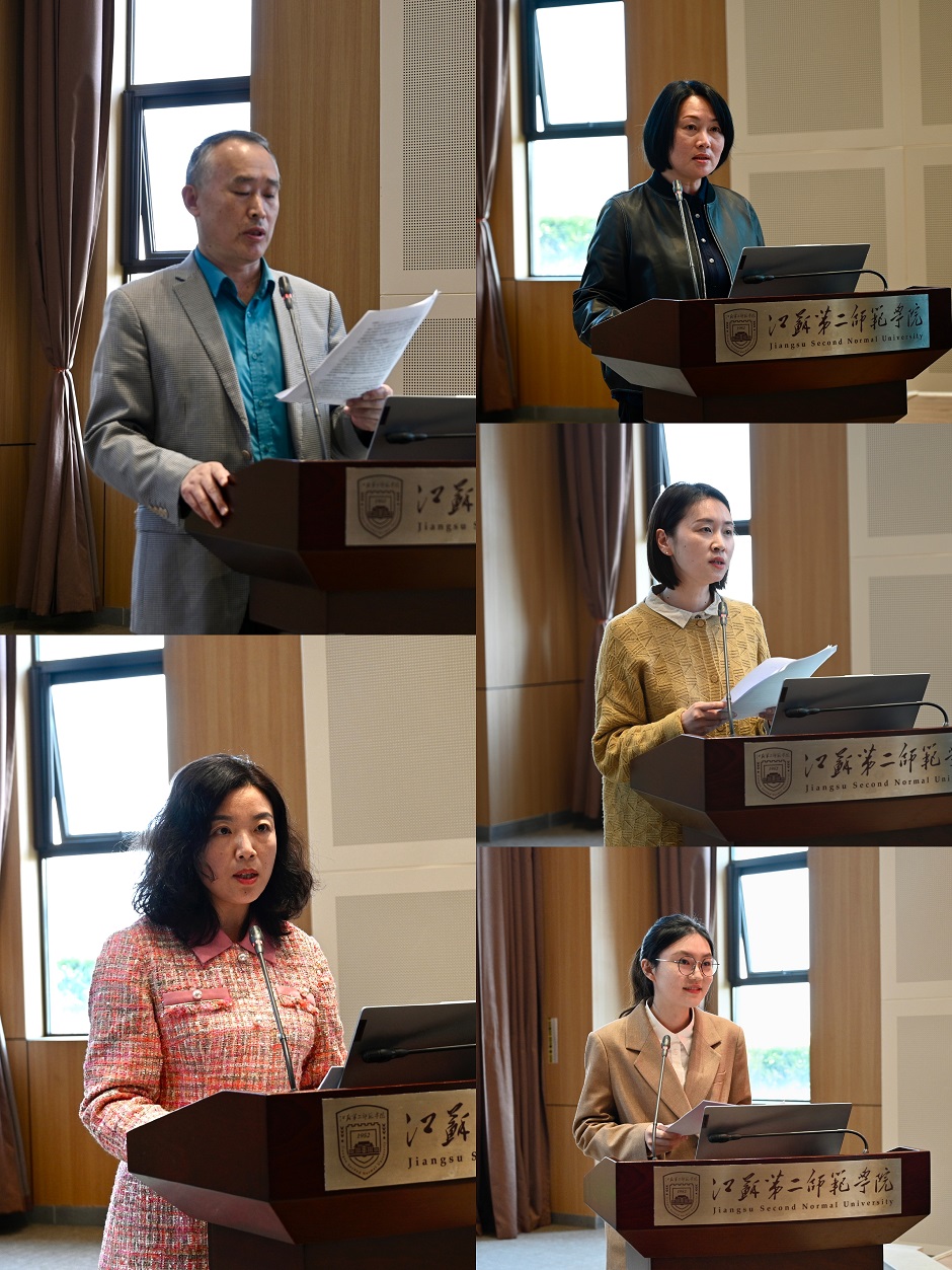 生命科学与化学化工学院院长蒋功成、文学院院长姚苏平结合学院教风学风建设工作特点做分享报告,总结经验,展望未来,学思践悟,引领进步,促进各学院交流,为落实教风学风建设树立标杆。图书馆馆长施雁冰基于图书馆视角分析我校教风学风现状,从图书借阅情况、读书分享、活动开展等方面展开分析。美术学院教师代表闫彦以“爱与执守”为题,从爱学生、爱学校、爱专业三方面讲述自己与学生之间的互动,分享在教学相长中促进教风学风建设的体悟。学生代表、教育科学学院2019级小学教育专业王怡结合自身经历,讲述她获得国家奖学金的奋斗历程,并坦率指出了学校工作在专业实践、师生互动等方面存在的不足。