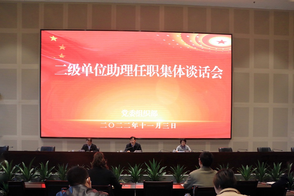 11月3日下午,我校在石湫校区敬业楼107会议室召开新任二级单位助理集体谈话会议。党委书记王仁雷、纪委书记崔燕出席会议并讲话,党委组织部、党委统战部部长张其飞主持会议并宣读了任职文件,新任二级单位助理及相关单位负责人参加会议。