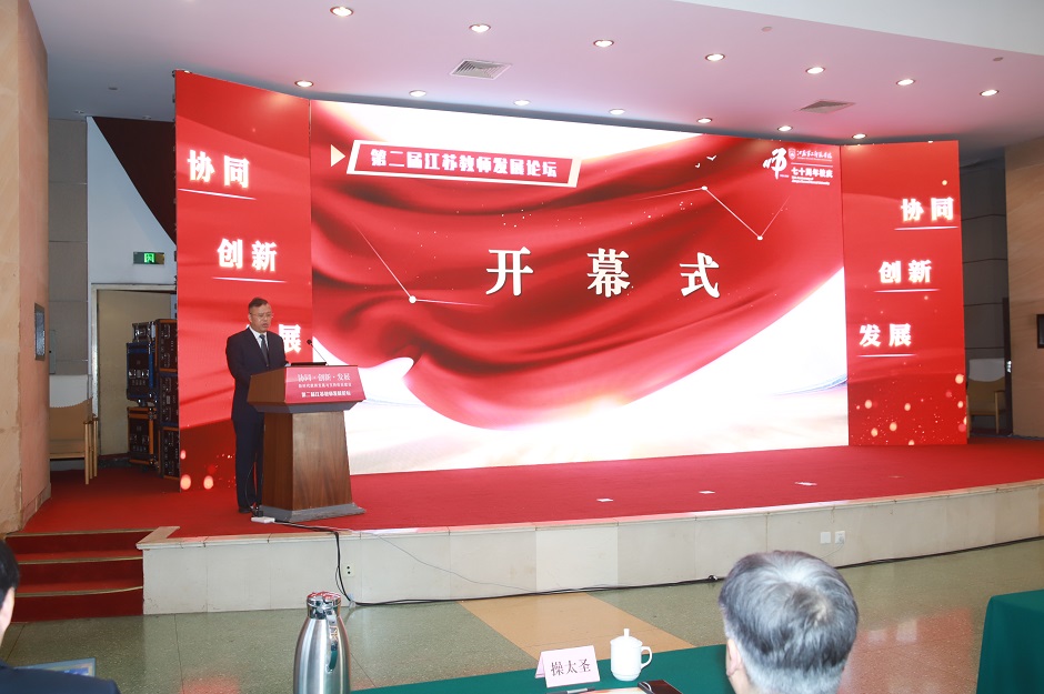 为深入学习贯彻党的二十大精神,全面落实《新时代基础教育强师计划》要求,加快江苏高素质专业化创新型教师队伍建设进程,在我校建校70周年之际,由师干训中心主办的第二届江苏教师发展论坛于11月5日在南京举行。教育部教师工作司副司长(援青)、青海省教育厅副厅长宋磊,江苏省教育厅副厅长潘漫,我校党委书记王仁雷,我校副校长陈金如,江苏省教育厅教师工作处副处长杨菲菲出席开幕式。来自全国各级教育行政部门领导、教师发展机构培训专家、高等院校教师教育专家、江苏中小学学校校长及骨干教师代表参加本次论坛。本次论坛围绕“新时代教师发展与支持体系建设”主题,直面教师队伍建设的热点、难点问题,广泛交流、深入研讨,打造全省教师教育的知识生产与创新平台,推动江苏教师队伍高质量发展。开幕式由副校长陈金如主持。