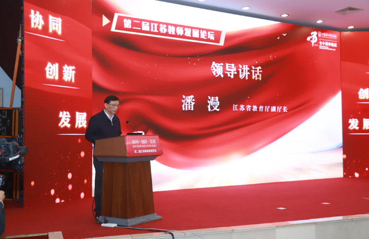 江苏省教育厅副厅长潘漫对论坛的成功举办表示热烈祝贺。他指出,江苏始终坚持把广大教师作为教育发展第一资源,出台了关于教师队伍建设的系列文件,创建了江苏优秀教师培养培育的系列品牌,全省教师队伍综合素质、专业水平、创新领域持续走在全国前列。潘漫提出,落实新时代教师工作要坚持贯彻落实党的教育方针政策,要牢固树立师德师风第一评价标准,更加积极服务于江苏教育改革创新的实践。他希望江苏第二师范学院在建校70周年的新起点,为我省率先实现教育现代化作出更大贡献,希望省师干训中心发挥好省级教师发展机构的职能优势,加速论坛成果转化,引领全省教师队伍建设实践。