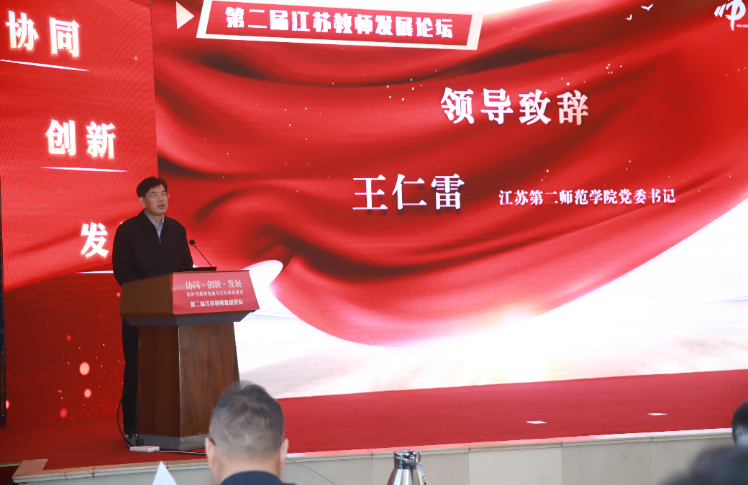 江苏第二师范学院党委书记王仁雷在开幕式上致辞。他指出,第二届江苏教师发展论坛是深入学习党的二十大精神、深化教师管理体制机制改革的重要举措,也是我省高端教师培训工作的重要内容。王仁雷表示,教师专业发展与支持体系建构是高水平教师教育体系建设的重要一环,对于深化新时代教师队伍建设改革、推进教师专业发展现代化进程具有重要意义。他期待与会专家和学者聚焦论坛主题,为推动教师教育领域学术创新、推进新时代教师队伍建设贡献智慧。