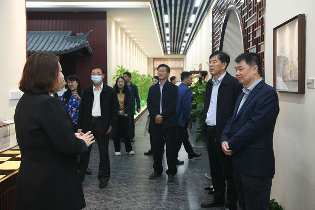 随后,调研组先后参观了“锡剧馆”“梨园清梦”、横山书院等常设展厅。馆中藏品包括镇馆之宝——戏装大师谢杏生先生用纯金线亲手制成的龙绣片,锡剧学者孙中先生捐献的手稿和锡剧名家王兰英先生捐献的家具以及我校青年教师李楚洋、谢渊的美术和雕塑等作品。其中横山书院作为在“新文科”建设潮流中应运而生的现代书院,将成为我校戏曲文化交流的阵地,举办各类文化讲座和学术活动的文化传承中心。
