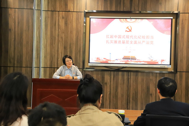 崔燕作题为“扛起中国式现代化纪检担当 扎实推进基层全面从严治党”的主题讲话。她分析了党的十八大以来,反腐败斗争态势逐步发生的变化,强调全面从严治党是协调推进“四个全面”战略布局的重要途径,指出学校制定出台了《全面从严治党党委主体责任实施办法》《全面从严治党纪委监督责任实施办法》《二级党组织全面从严治党主体责任实施办法》等一系列制度文件,对责任是什么、怎么干、干成什么效果,都作了明确的要求和部署。纪检委员要聚焦全面从严治党这个主业主责,将各项监督工作抓紧抓实,绝不能让自己的“责任田”成为“撂荒地”。她勉励大家“纸上得来终觉浅,绝知此事要躬行”,希望纪检干部牢记总书记“三个务必”要求,不断淬炼“七种能力”“八种本领”,争做“五个表率”,当好党纪国法的“守护者”、学校政治生态的“护林员”、群众身边的“监督哨”,协助党委一体推进“不敢腐、不能腐、不想腐”,不断开创各项工作新局面,以全面从严治党新成效保障学校高质量发展,谱写二师发展新篇章,以优异成绩落实二十大精神,向即将到来的七十年校庆献礼。